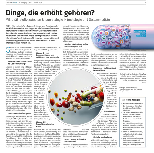 Mikronährstoffe sind weit mehr als ein Trend – sie können über Gesundheit, Krankheitsverlauf und Lebensqualität mitentscheiden. Dr. Muschitz zeigt eindrucksvoll, wie eng Vitamine und Spurenelemente mit unserem Immunsystem, den Knochen und dem gesamten Stoffwechsel verknüpft sind – und warum ein Mangel oft lange unbemerkt bleibt. Ein Beitrag, der sensibilisiert und zum Umdenken anregt.